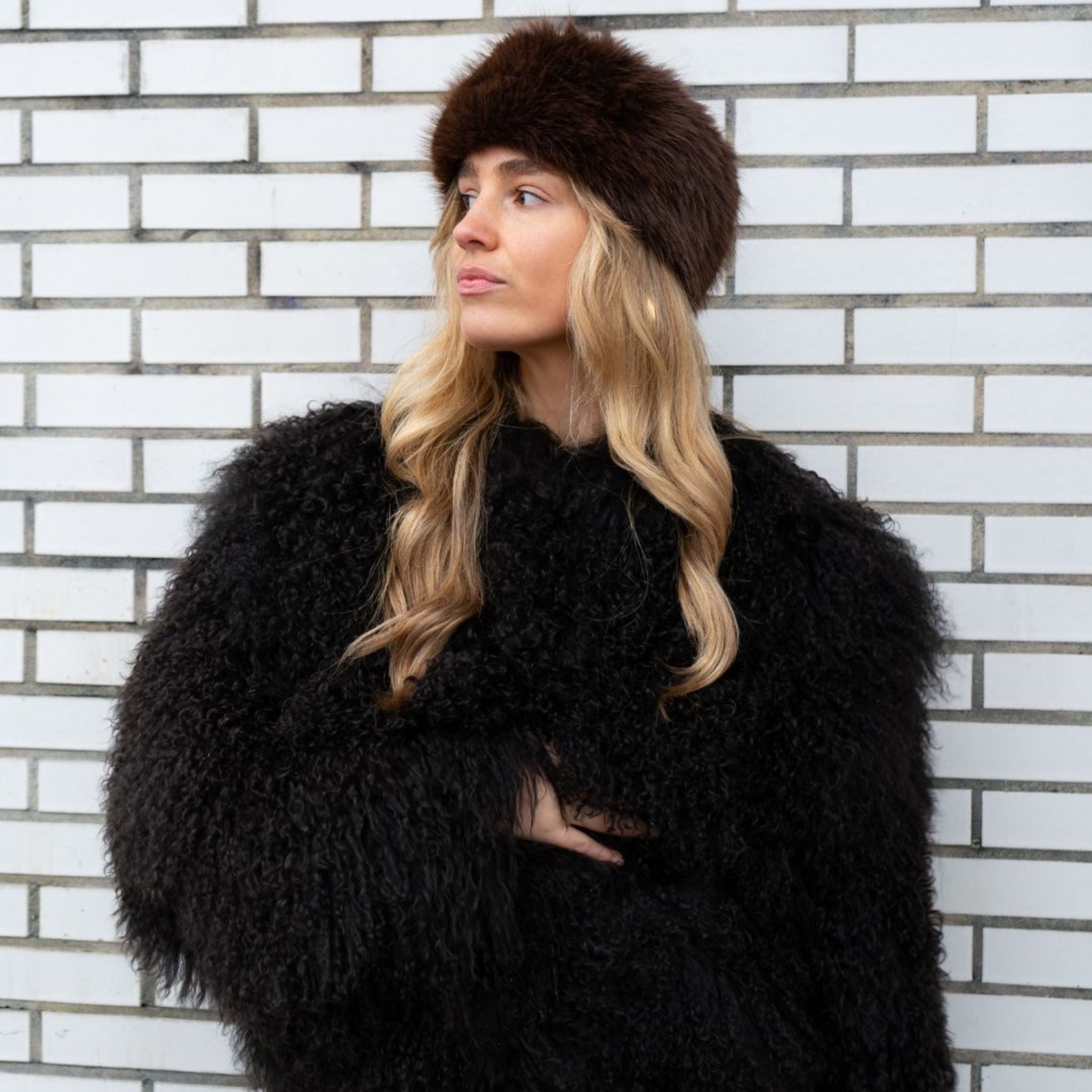 Make a bold statement with Cinder, a limited edition Mongolian shearling coat in deep dark brown. The long, soft curls of premium shearling create a luxurious texture that’s perfect for winter