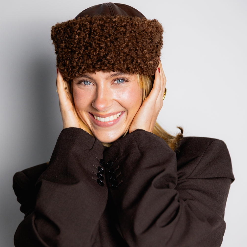 PRE-ORDER | DELIVERY SECOND WEEK OF DECEMBER. The Faux Fur Shearling Scooby is for those who love warmth and personality. Its rich brown towns bring vintage nostalgia with a modern touch. The hat you throw on when the temperatures drop, but you still want to look cosy yet iconic. The winter staple that becomes your signature this season.